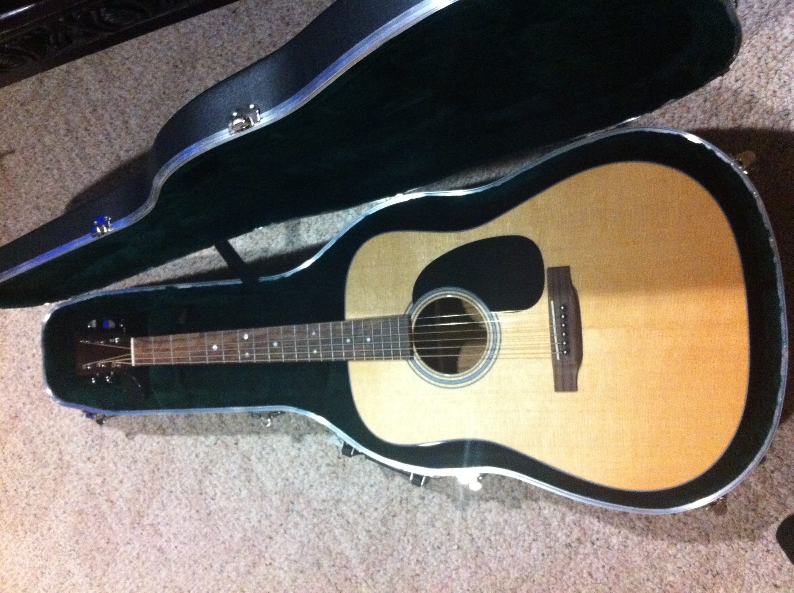 Below is my new Martin D-18 Guitar. I've been playing a Fender and glad I made the investment in the Martin. This thing is a cannon from the start. It is really amazing the difference in sound quality. I can only imagine what it will sound like once it has a chance to open up a little bit.