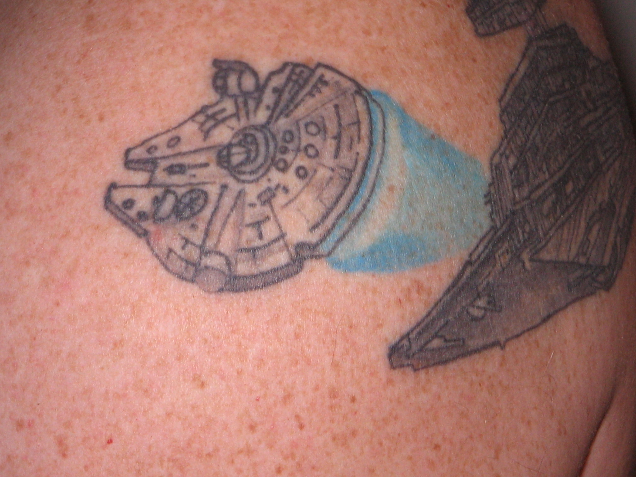 I've got a mandalorian crest on my right shoulder and I'm getting an imperial logo on my left shoulder. Just got to wait for this damn surgery to be over with. I'd hate for a stupid tattoo to complicate a much needed operation.